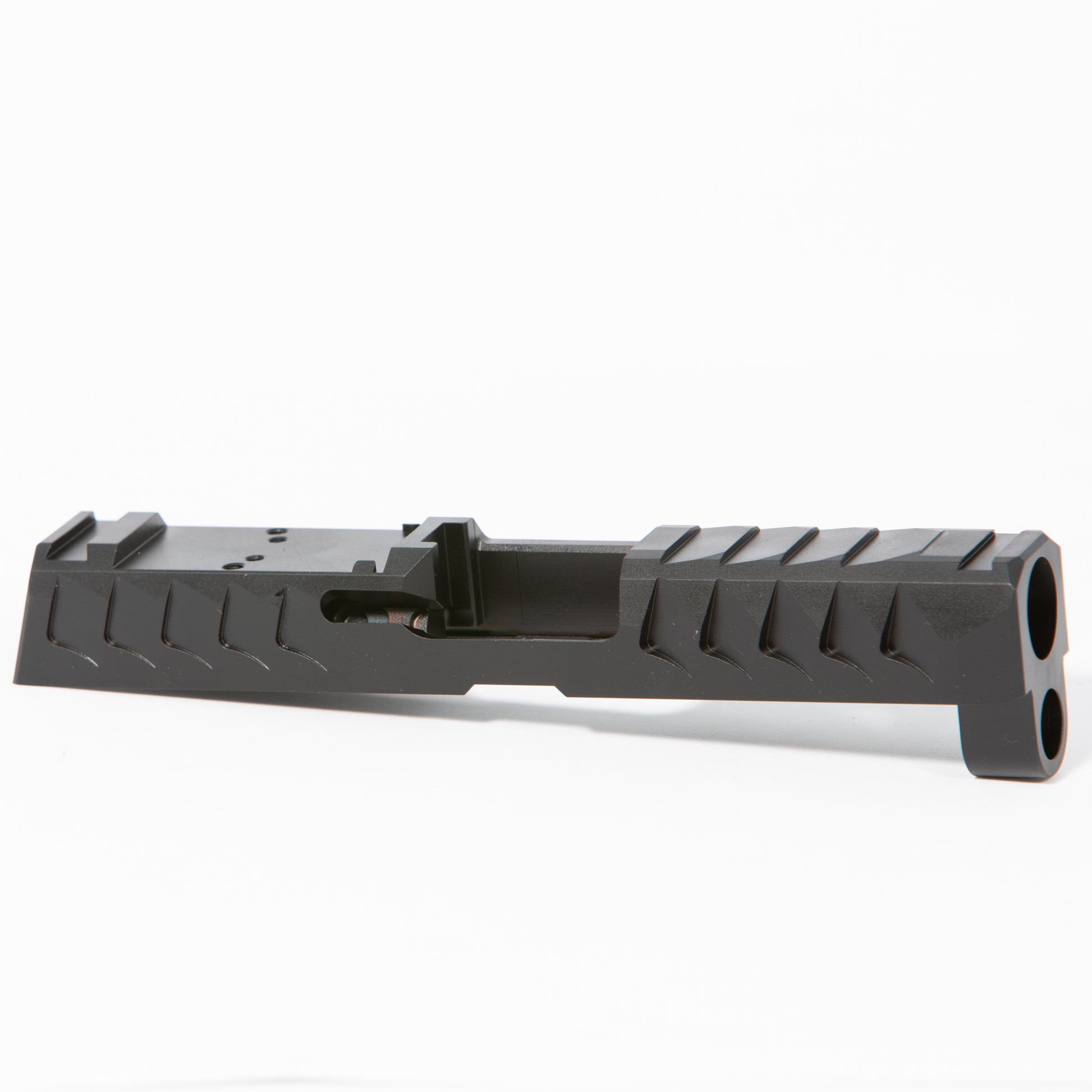 Featuring aggressive front and rear serrations for easy racking. DLC coated. Pre-cut for optics with RMR footprint or DPP/Sig. Compatible with 3.9 inch barrels and all factory parts.