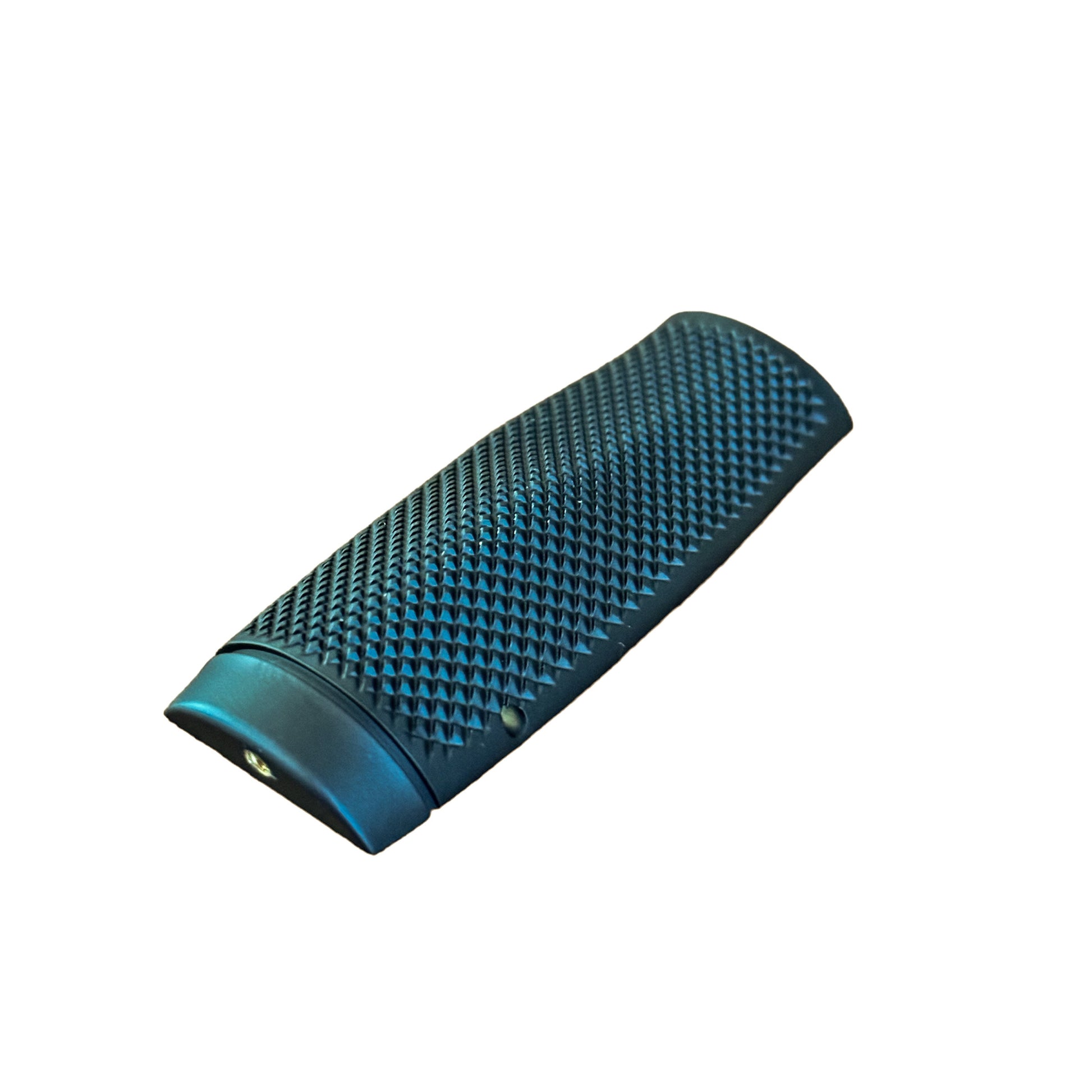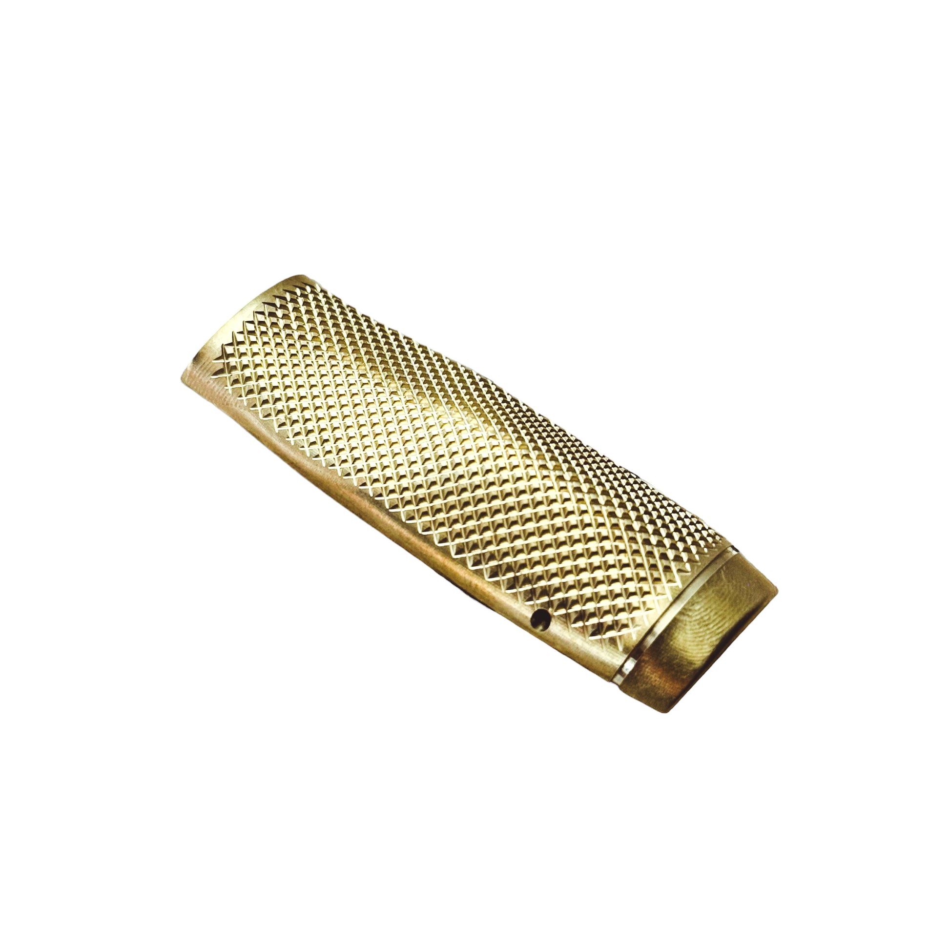 Adds weight and improves ergonomics with grippy texture. Made from brass and comes in raw brass or cerakoted black.