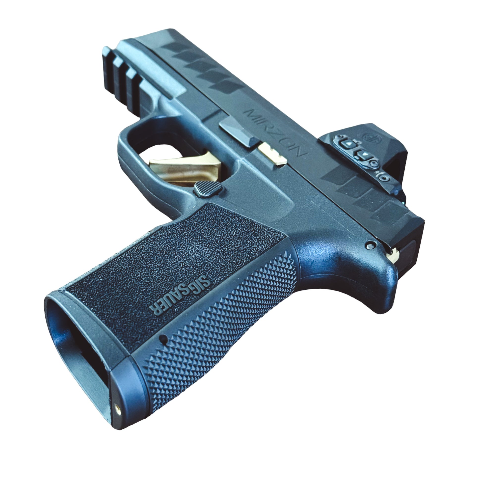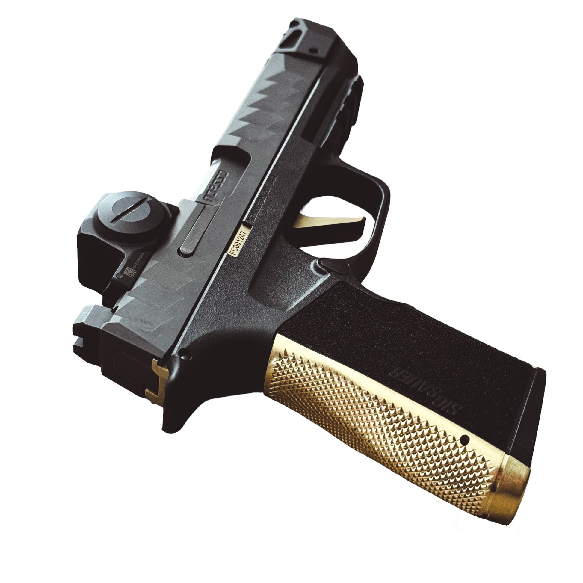 Ergonomic brass backstrap for P365 X-Macro grip module.